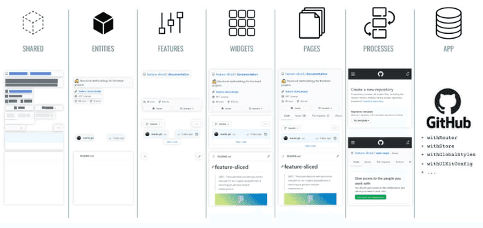 - Shared - 재사용 가능한 기능, 특히 프로젝트/비즈니스의 특성과 분리되어 있을 때. (ex : ui kit, axios config, config 등)